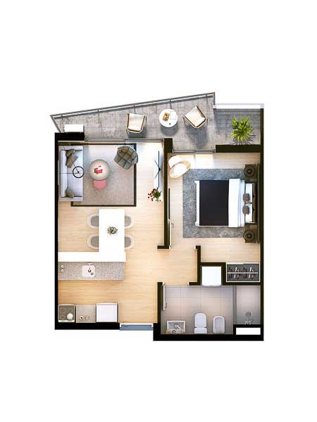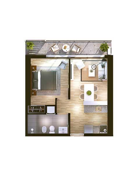 • El inusual diseño del edificio responde a diversos factores como la dimensión del predio y las regulaciones urbanas. Así mismo, la orientación se ha definido según criterios medioambientales y con la intención de maximizar las vistas hacia el Puerto, el Cerro de Montevideo, la Bahía, al Río de la Plata y el este de la ciudad. El programa residencial se compone de 194 unidades de vivienda, 95 unidades de un dormitorio, 96 de dos dormitorios y 3 de tre: 1 Dormitorio: • 1D-2C desde U$S 130.563 (piso 23 - torre 1) • 1D-2D desde U$S 128.367 (piso 18 - torre 2D-5D desde U$S 148.000 (piso 4 - torre 1)1)