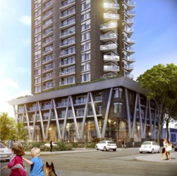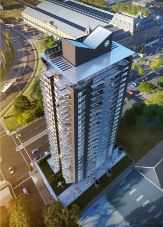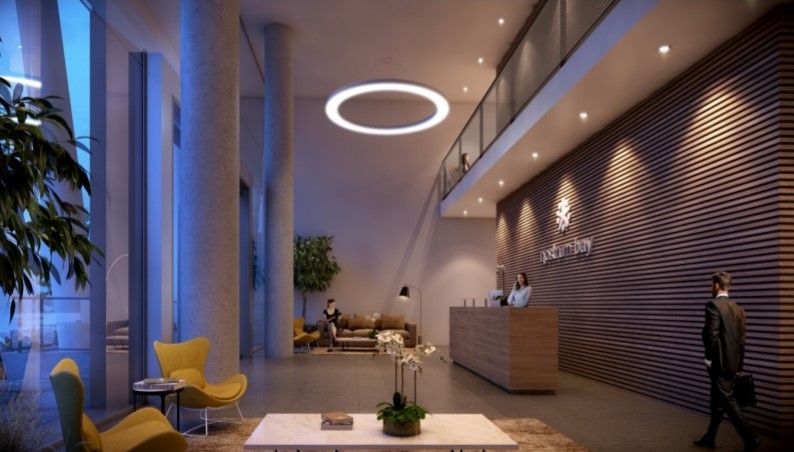 En obra,una torre ubicada en el Centro,en frente a la Bahía del Puerto de Montevideo en la intersección de las ramblas Franklin D. Roosevelt y Sud América.