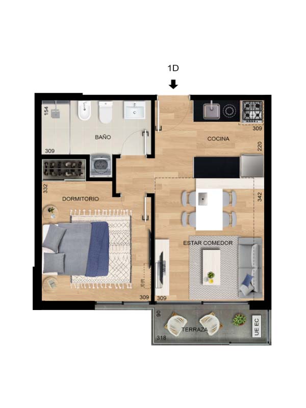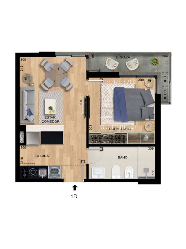 1 Habitación 1 Cuarto de baño 2019 Año de Construcción